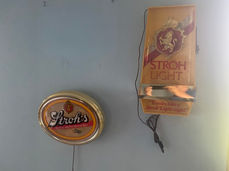 Budweiser, Stroh’s, Heileman’s & Special Export Bar Lights; Schlitz Beer Mirror; Schlitz Beer Taps; Leinenkugel’s Glasses; Beer Steins & Glasses.