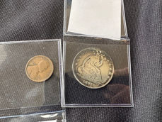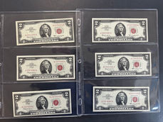 1879 $5 State of Louisiana Baby Hand; 1917 US $1 Legal Tender Note; 2017 $1 Federal Reserve Star Notes; $10 & $20 1914 Federal Reserve Notes; 1928 $1 Silver Cert. “Funny Back”; $1 Silver Cert. Star Note 1957, A & B; 1957 Silver Certificates; (6) $2 Red Seal Unc. 1963; 1950D $50 Star Note; (36) $1 1934 Silver Cert; (12) $2 1963 Red Seal Unc; Indian Head Penny Album; Over 800 1910-50 Wheat Pennies; 1969 Gold Plated 50 Cent Piece 40% Silver; 2005D American Bison Nickel MS65 Condition; Roll of 12 Presidential Dollars, 24K Gold Plated, US Mint Sealed; (42) 1oz. Silver Rounds; 2 Peso Dollar, Independent Republic of Texas.
