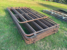(9) 10’ Self Locking Gates; (5) 16’ Gates; (3) Big Valley 12’ Gates; (3) 10’ Self Locking Pipe Gates; (4) 10’ Feeder Panels; Chain Link Fence Panels, (Some Sets); (6) 10’ Mesh Steel Gates 4’ High; Calf-Tel Fiberglass Calf Hutch.
