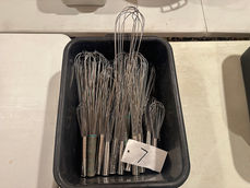 Table Service & Steak Knives; White Dinnerware (Some New); Double Hole Plate Warmer on Wheels; Pizza Peels; SS Colanders, Strainers, Trays & Pans; Flat & Hand Cart; Bread Pans; Fryer Baskets; Half & Full Size Deep & Shallow SS Pans; 6’ Tall Sheet Pan Carts; SS Kettles (Some Very Large); SS Shelving of all Sizes; Sneeze Guards; Checkout Counters & Stands; Wall Mount Baby Stations (Some New); Buss Carts; (2) Patio Heaters; Patio Table & Chairs; Aluminum/Glass 2dr. Cabinet w/ Lock; Waitress Stations; Youth Chairs; Table Service Trays.